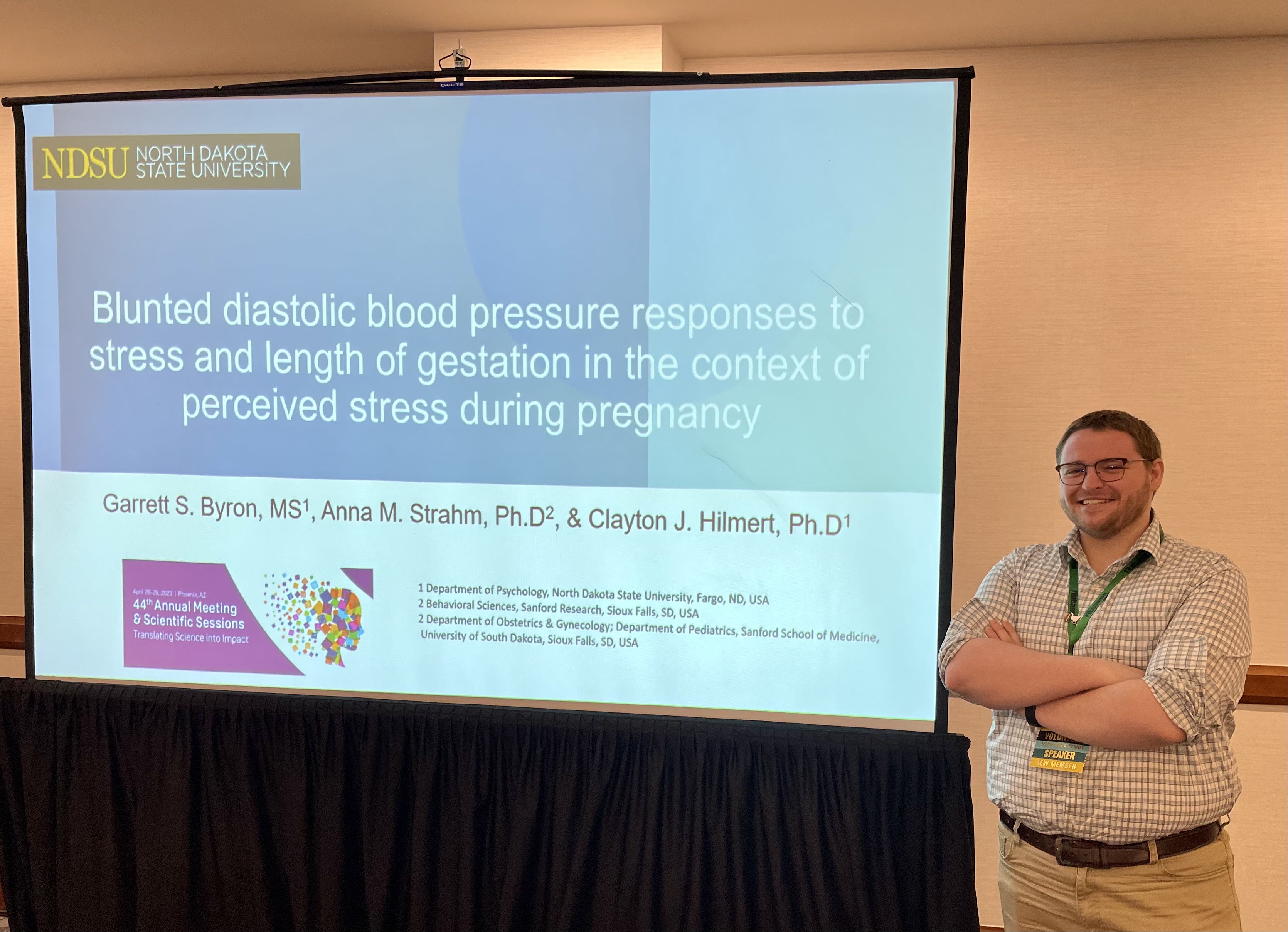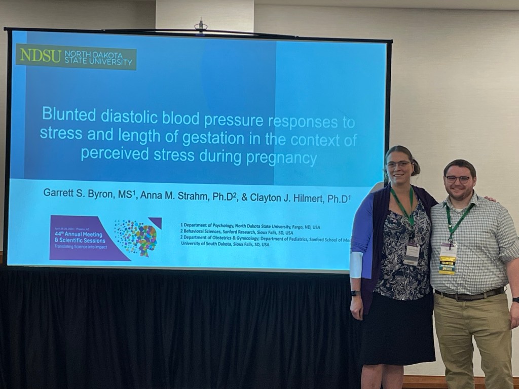 Byron, G.S., Strahm, A.M., & Hilmert, C.J. (2023, April 26-29). Blunted diastolic blood pressure responses to stress and length of gestation in the context of perceived stress during pregnancy. Paper presented at the Annual Meeting & Scientific Sessions of the Society for Behavioral Medicine, Phoenix, AZ.